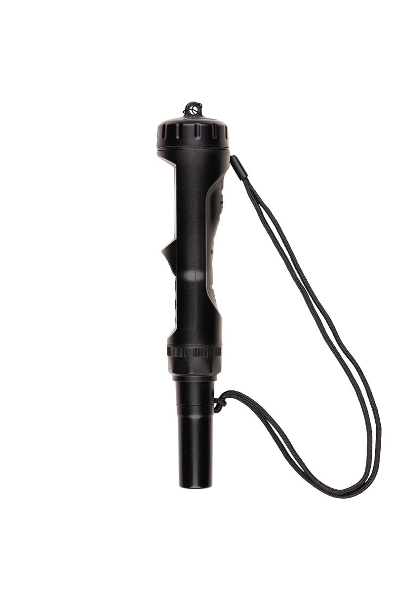 O E60 Pro2 cabe confortavelmente na sua mão graças ao seu cabo traseiro ergonômico de borracha e vem com um cordão de tampa para armazenamento seguro. Possui calibração manual digital para ajuste fácil e flexível. O medidor é à prova d'água IP67 e flutua, sem risco de perdê-lo em líquidos.